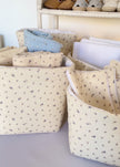 Gardez votre espace de change bien organisé avec notre panier en tissu pour table à langer. Disponible en quatre tailles pratiques, ce panier vous permet de ranger tous les essentiels de bébé de manière ordonnée et élégante. Fabriqué en tissu coton et molleton pour un maintien optimal, chaque panier est conçu pour s'adapter parfaitement à vos besoins de rangement. Choisissez parmi une variété de tissus pour assortir votre panier à la décoration de la chambre de bébé. De plus, personnalisez-le avec une broderie au fil doré pour une touche personnelle.